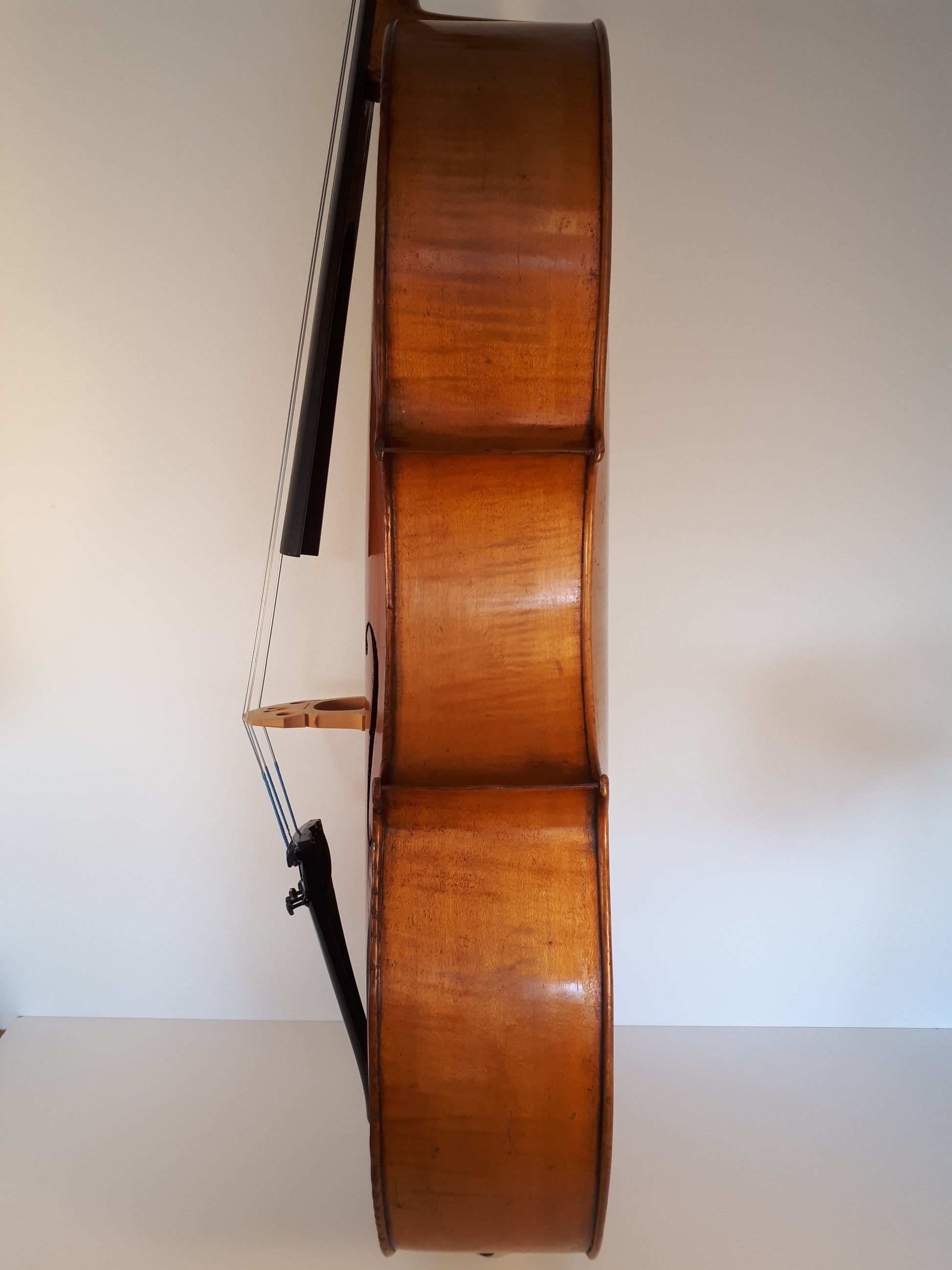 Ytterligare info: En äldre vacker välklingande cello, byggd omkring 1880-talet i fransk stil. Lack av gul kulör som åldrats vackert.