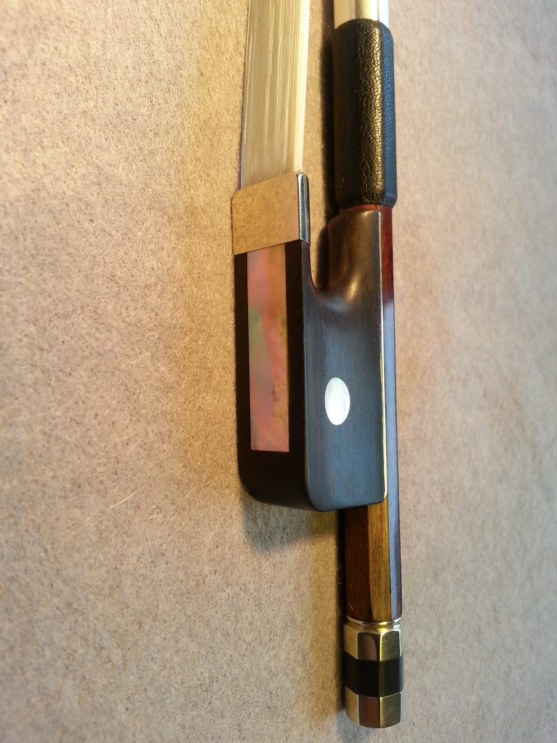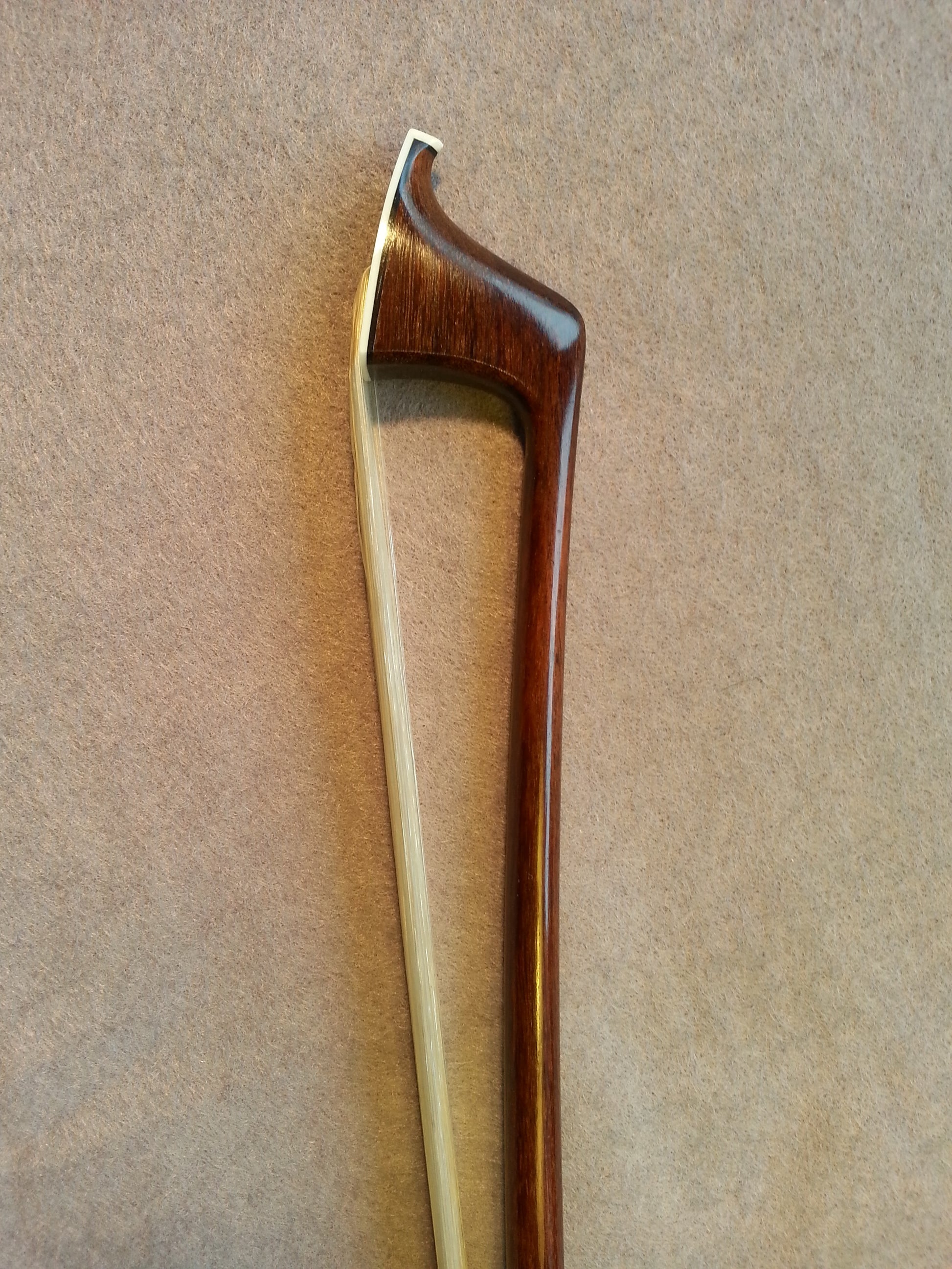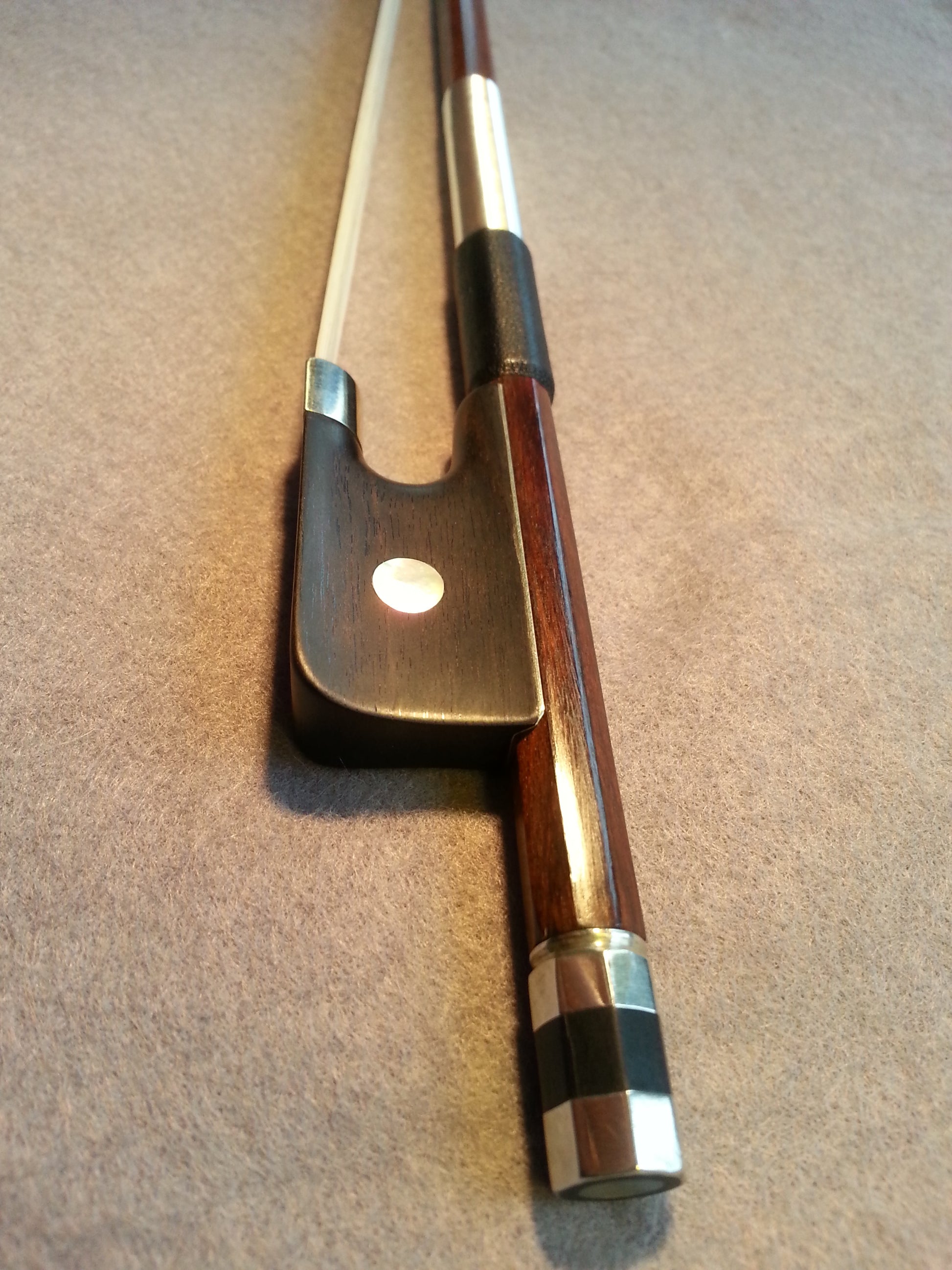 Additional info: A very fine old cello bow made in central Europe for more than a 100 years ago by an unknown maker. This cello bow was made out of the finest pernambuco wood and plays very well with a great sound. Due to its unknown maker the price is very modest. The bow was just recently fully served with new hair, silver and thum-leather.
