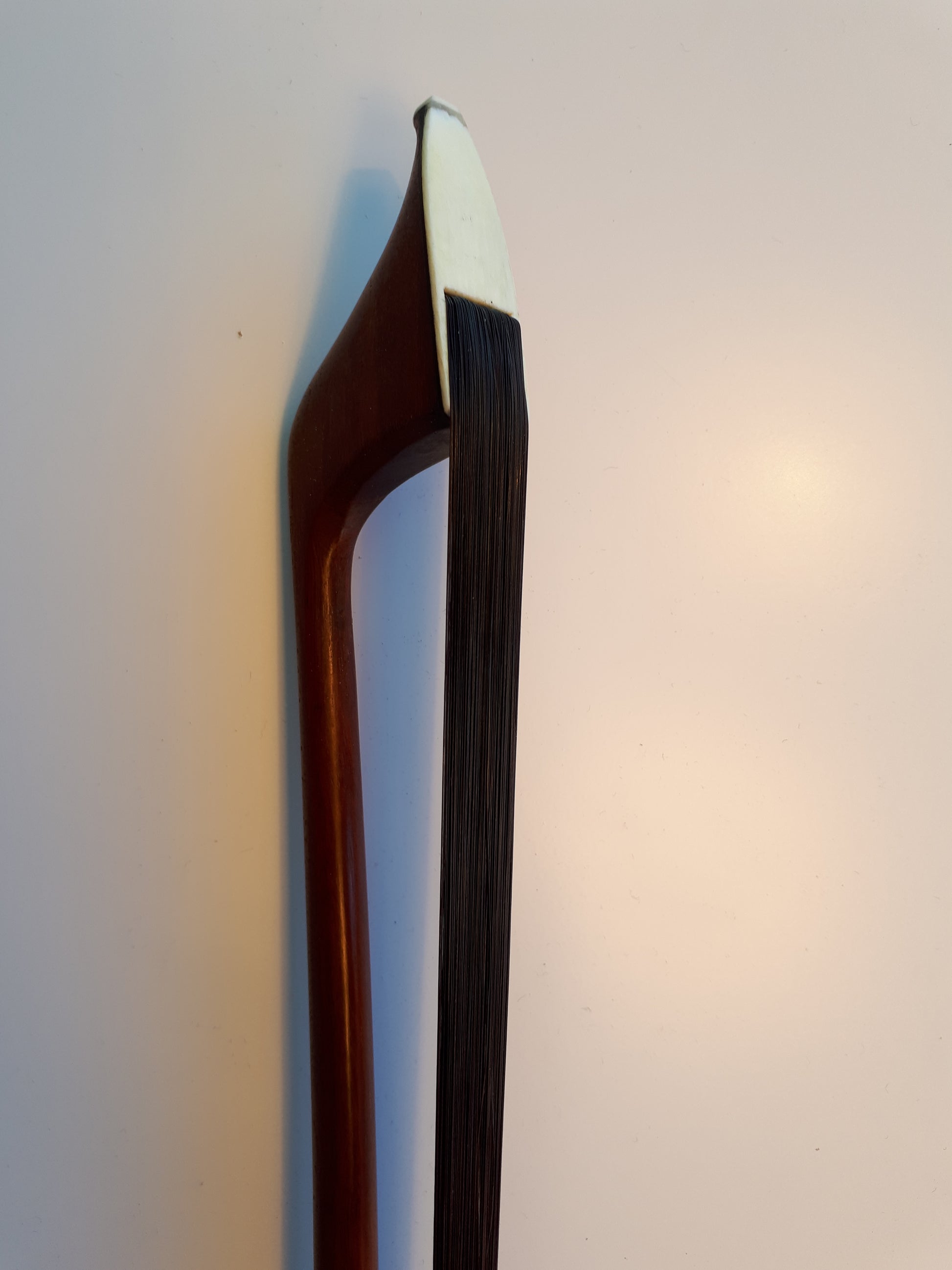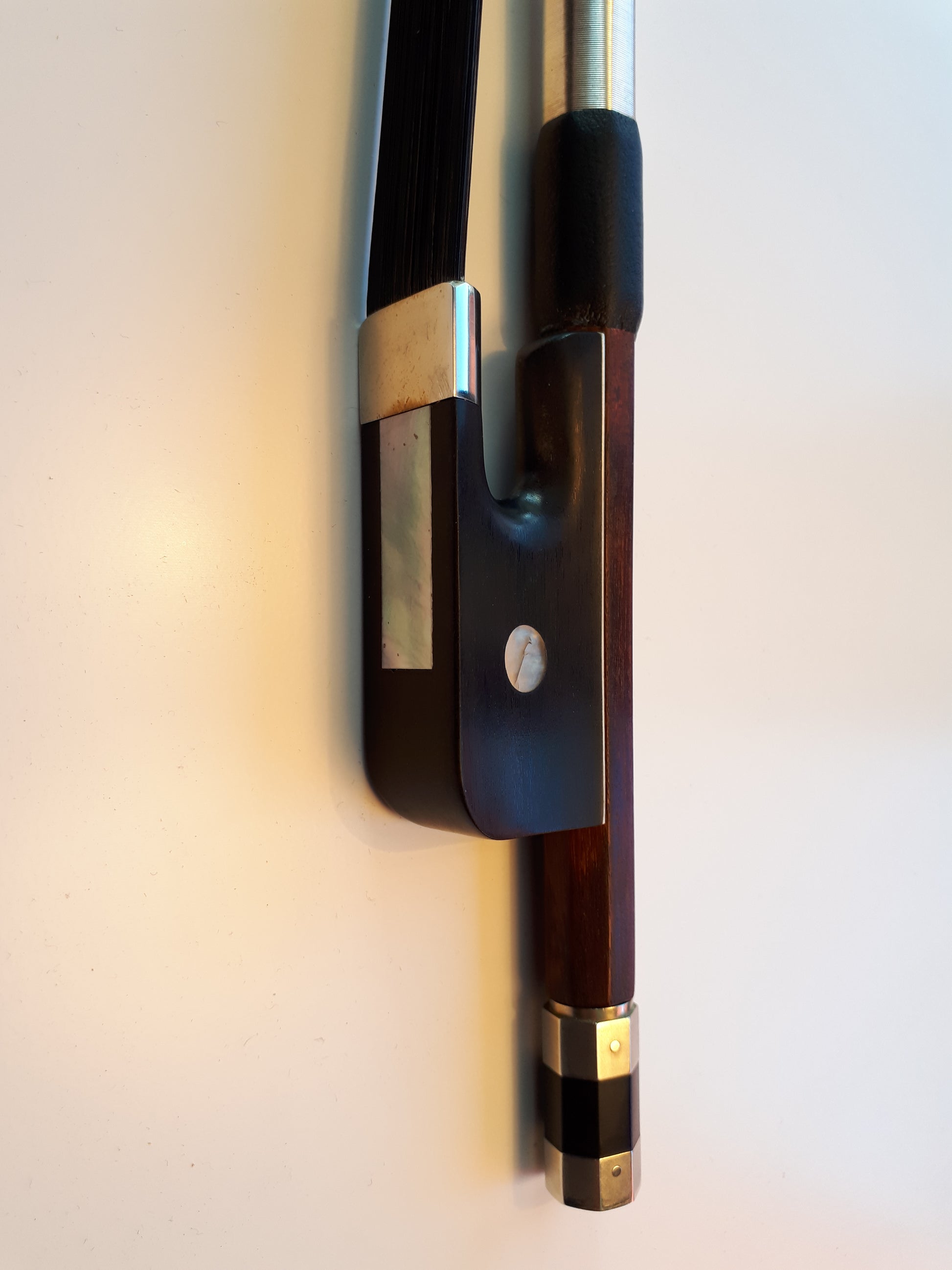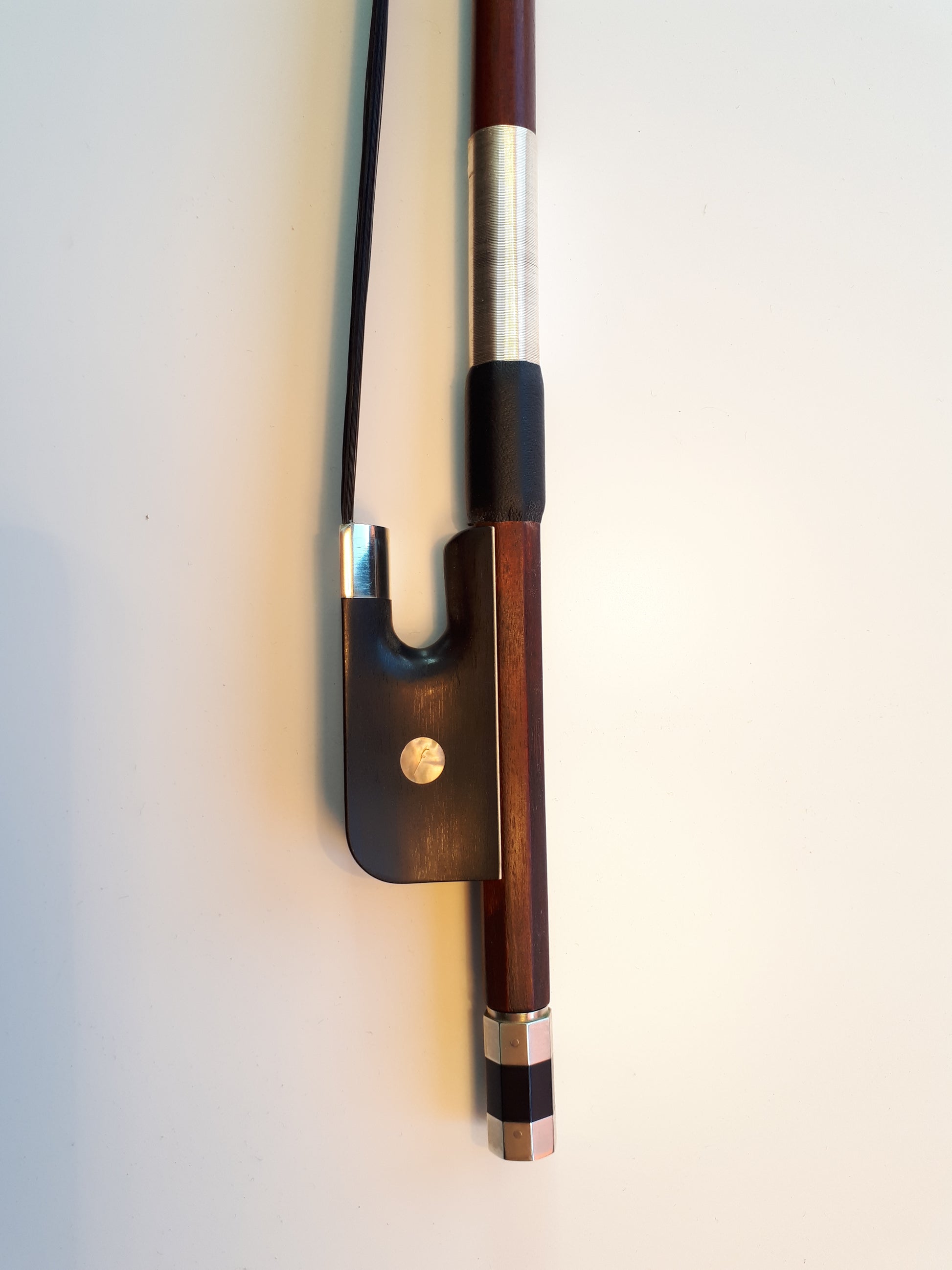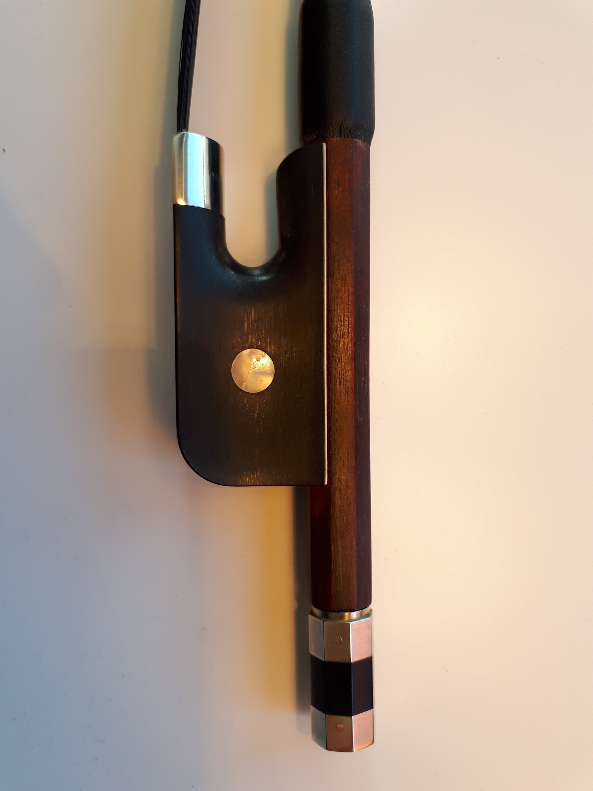 Övrigt: En äldre, mycket prisvärd och fin stråke för kontrabas. Denna äldre högklassiga fernambukostråken är mästerligt tillverkad vilket visar sig i sina fina spel-egenskaper. Stråken som är ostämplad köptes av sin tidigare ägare i Paris under 1990-talet.